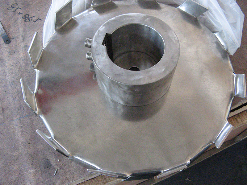 結晶罐:主要攪拌目的是促成晶核生成和長大,因此采用低轉速大直徑的周向流動,降低剪切速度防止破壞晶體的長大和防止晶體沉積罐底使晶體大小不均勻。使用的槳葉形式有:斜葉槳式(XJ、HJ、QJ等),錨框式(MS、KS、KSA,FSS等)。